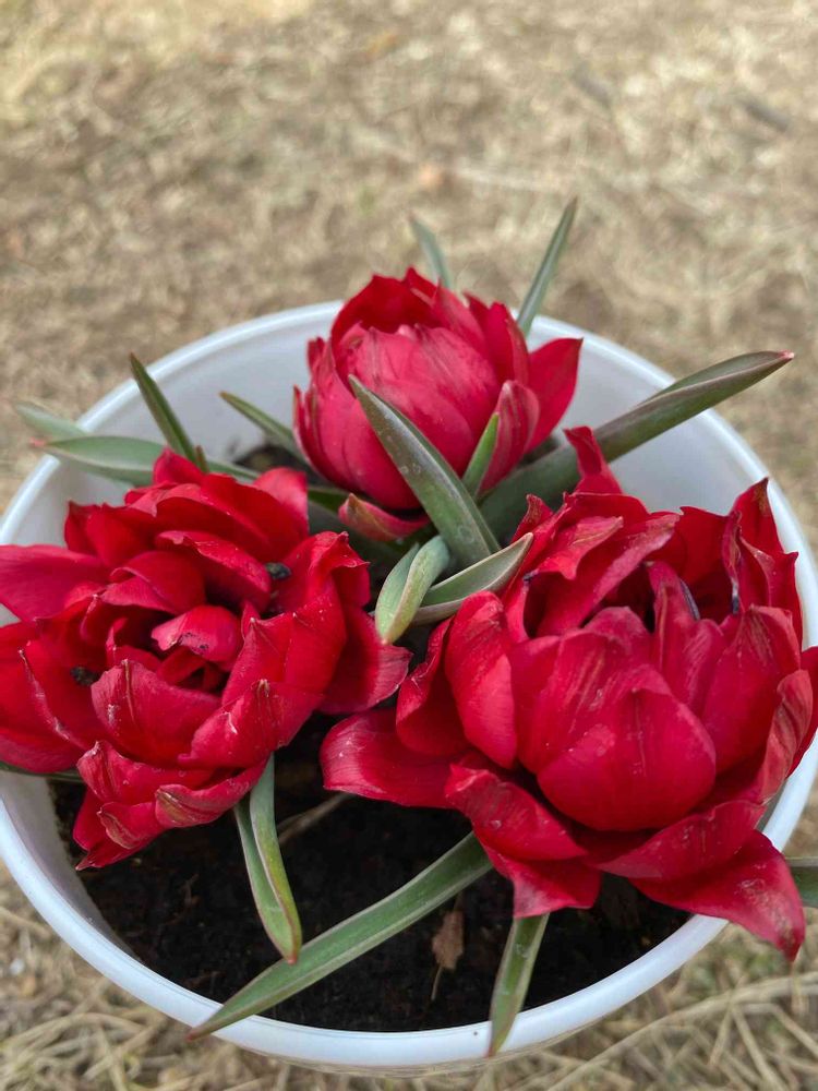 ミニミニチューリップのテタテ咲いてきましたよ‼️ ちっちゃい体にしては八重の大きなお花がとても可愛い子です😍😍