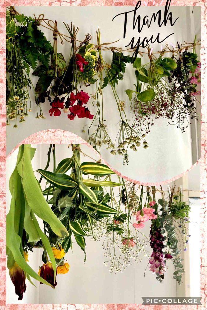 仲間のお店にたくさん頂いたお花達❣️仲間はお花の事がなにもわからないなりに皆さんに感謝の想いでドライフラワーを作り出してました😊