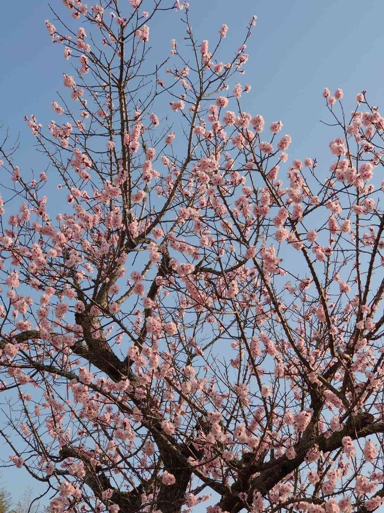 職場の杏、植えて何年になるか分からないけど、幹は、苔むしてます。