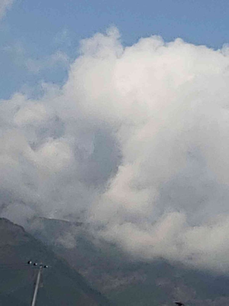 大きな雲くんが、山のベッド🛏に寝転んで、大きな口を開けて笑ってるみたい、に