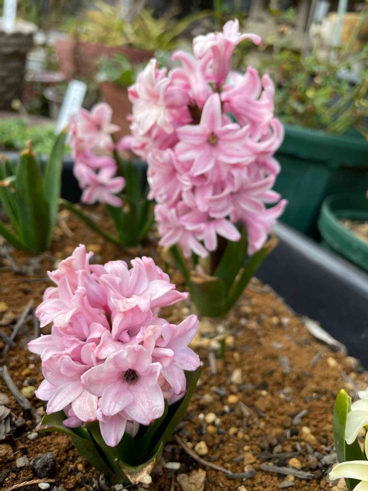 ヒヤシンスが見頃です。やっぱり大きい球根が勝ちです。