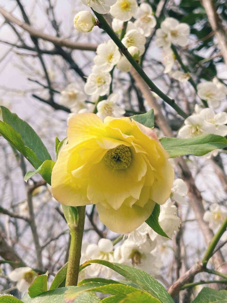 クリスマスローズと白梅のコラボとってもステキなショットですね👍💖🎶