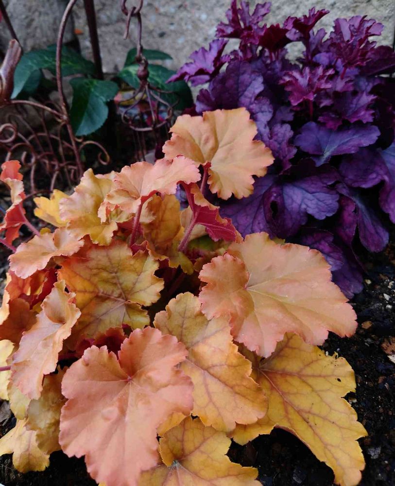 ヒューケラ ドルチェシリーズのこの2品種は特に冬の間もぺったんこになることなくイキイキしていましたよ👀💛💜