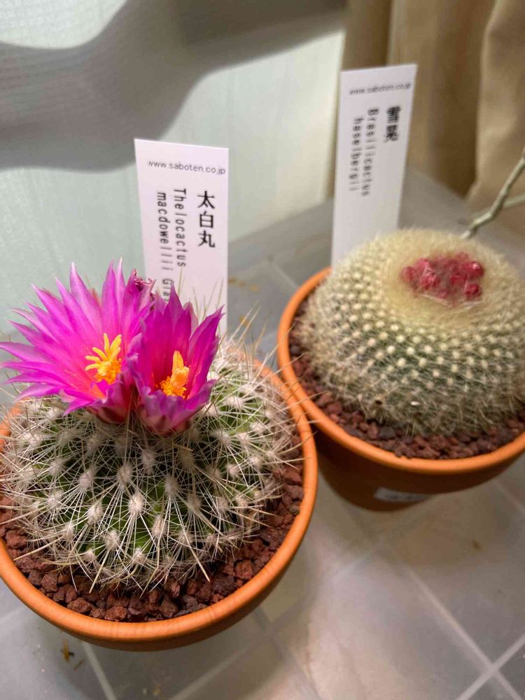 太白丸のお花ピンクが濃くて綺麗でした💕縮玉もあの姿からは想像できないぐらい可愛らしいお花ですよね🌵