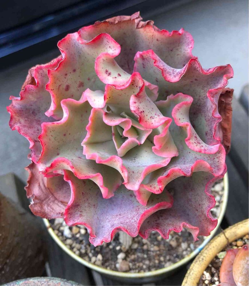 寒さと水控えめで縮んでますが…直径10cmくらいです