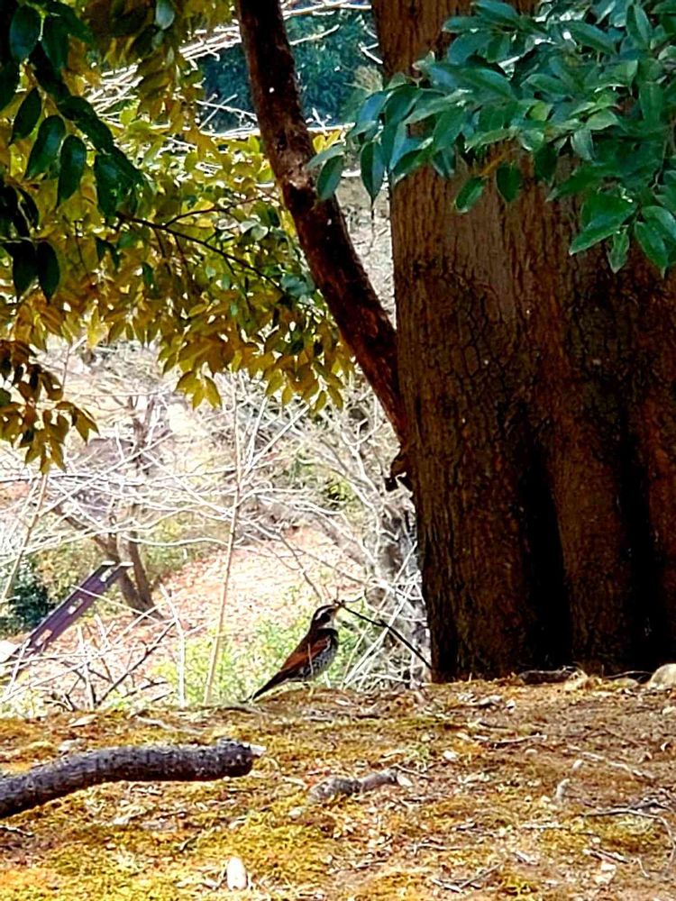 カシの巨木の下で野鳥が何かを、ついばんでました。
