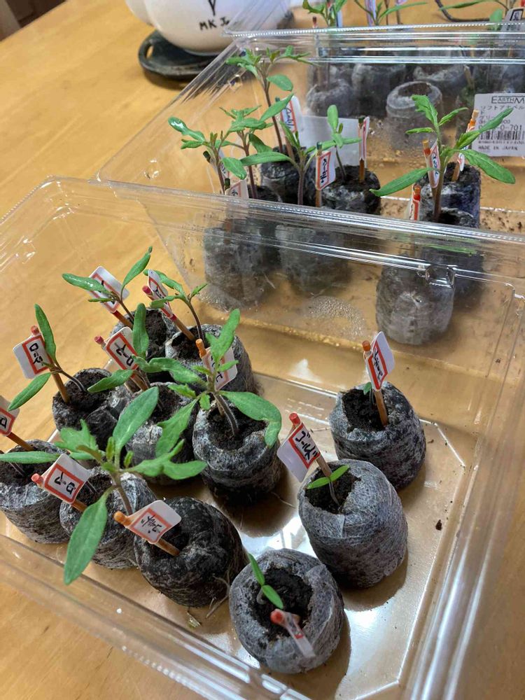 生食用のセレブオレンジとグリーントマト・ホワイトゼブラ、調理用ローマとクックゴールド。ブルーバイユーは芽が出ない。。。