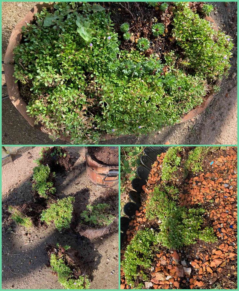 3年目のヒナソウと2年目クモマグサの鉢を解体し、ヒナソウは念願の地植えにしました‼️😊
