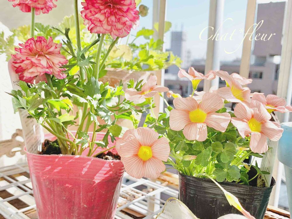 サーモンカラーで元気色のオキザリスです🌼💕💕