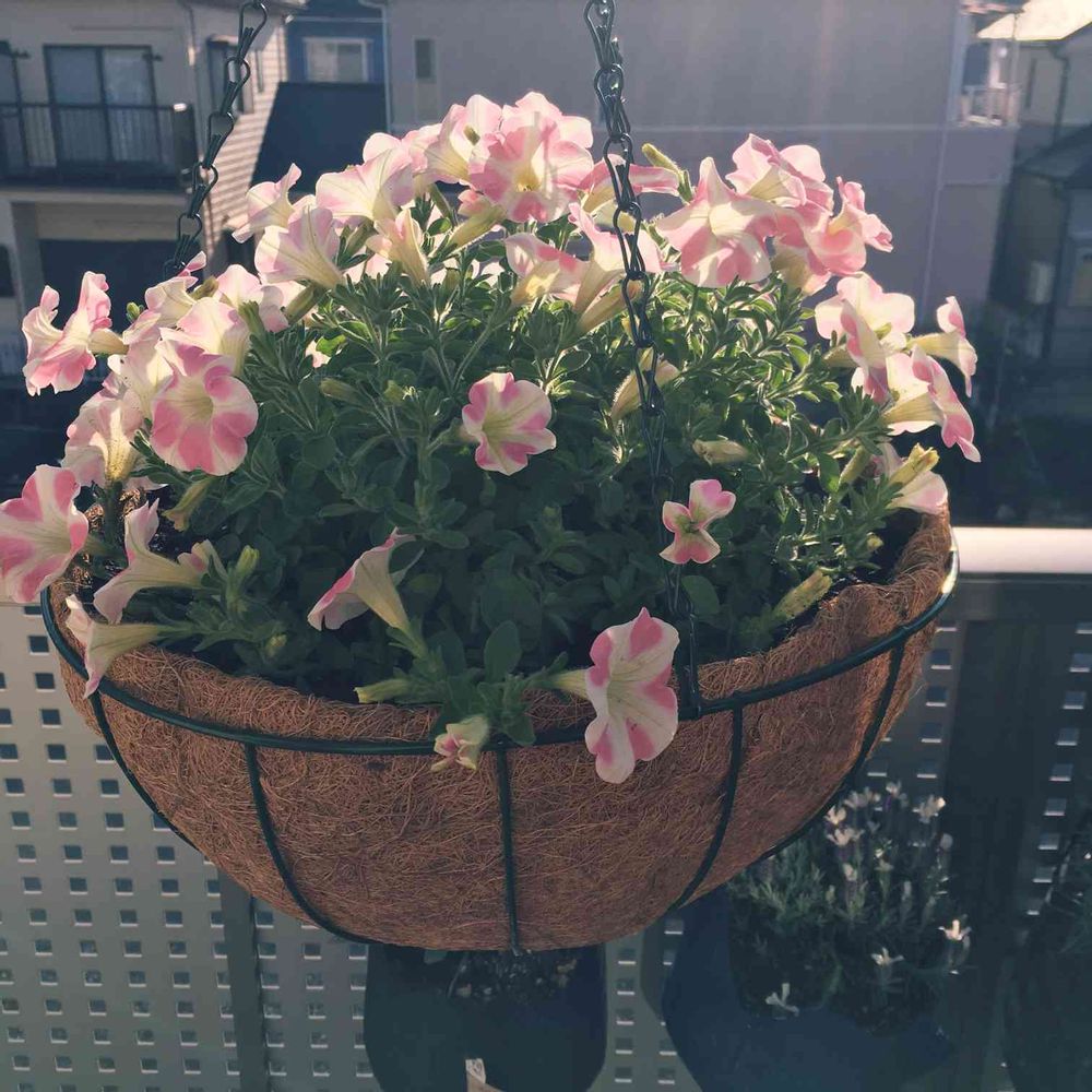 日が当たらないベランダと諦めてたけど、ハンギングならいけるかもしれない!と思い切ってサフィニアアートももいろハートに挑戦◎頑張るぞっ