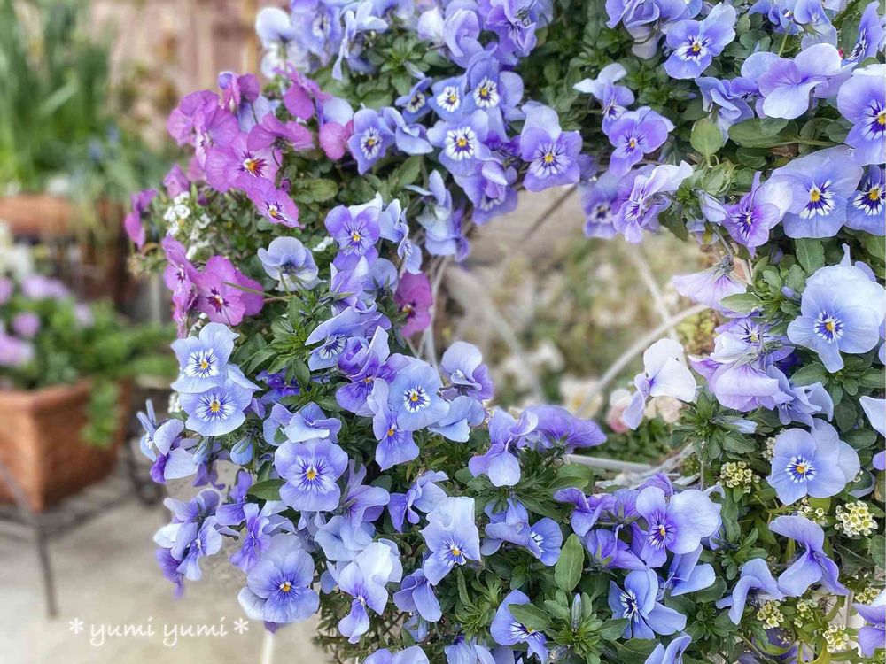 いろんなの入れたくなりますが、ビオラがたーくさん咲いているワントーンのリースもとっても素敵ですね〜😍😍😍
