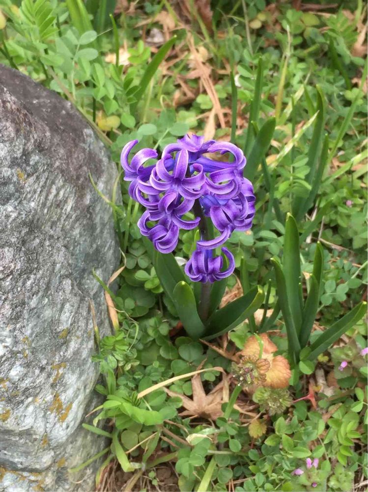 おはようございます! ヒヤシンス❣️ 庭石の陰でひっそりと咲いています.強いなぁ可愛いいなあ🥰 あれから10年…今度はコロナ禍に見舞われているけれどシンナリ強く頑張りましょう💕