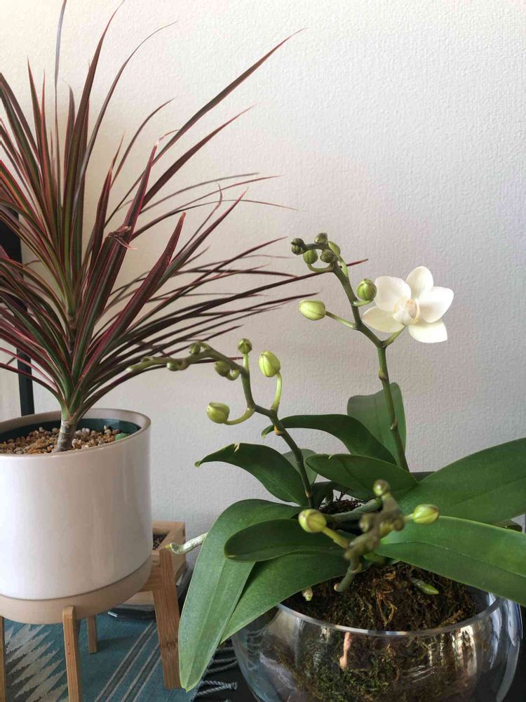我が家で唯一の花、ちびっこ胡蝶蘭。