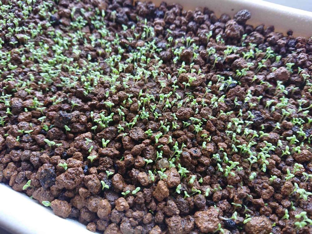 1週間前くらいにたね種まきしたジャーマンカモミールがすくすくと育っております(*´˘`*)