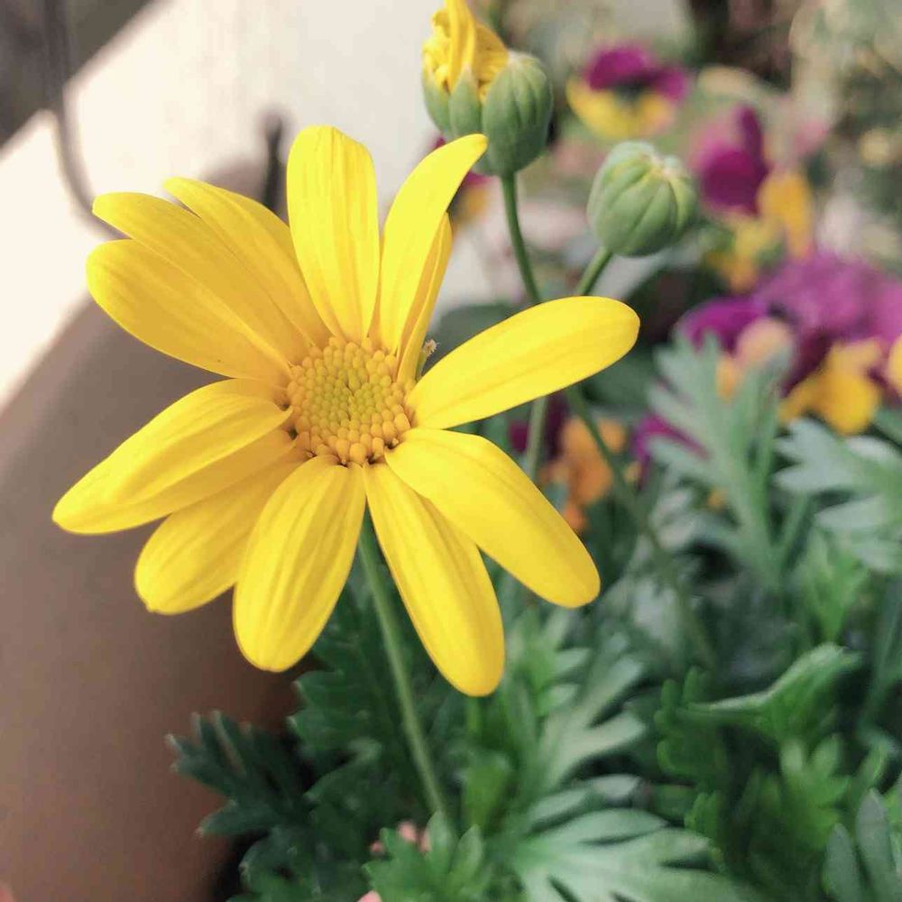 バルコニー/ベランダ,ユリオプスデージー,ビオラ パープルイエローの投稿画像