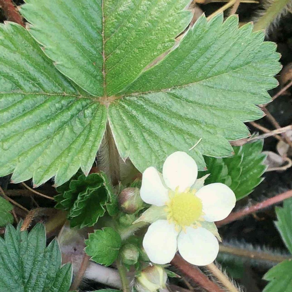 庭のクリスマスローズ、クロッカスに続いて、ワイルドストロベリーの花が✨