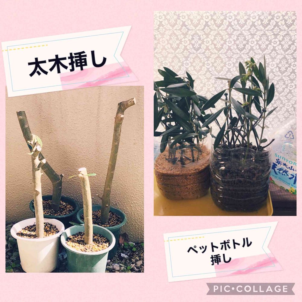 剪定したオリーブを教えていただいた太い枝で挿し木に挑戦中!!