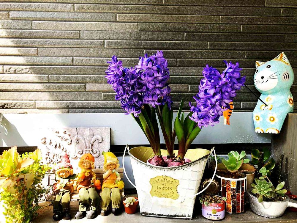 ヒヤシンスは重くて傾きだしました∑(゚Д゚)