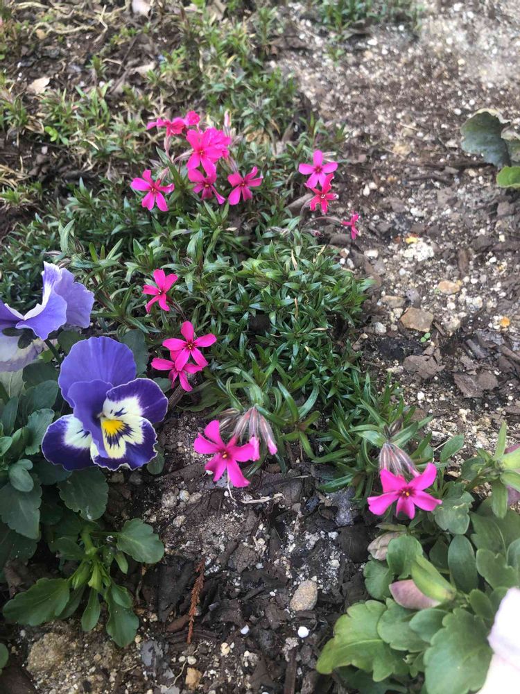 昨年の秋に実家から分けてもらって移植したシバザクラ。冬はすっかり枯れてしまったけど新芽が出てやっとピンクのお花が咲き出した✨もう1種類の白いお花が咲く予定のシバザクラは蕾がついてるからあと少しで咲いてくれそう😌