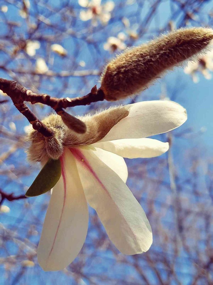 コブシの花びらにこんな綺麗なピンクの筋があるのを昨日初めて見たんですよ~😃🎶