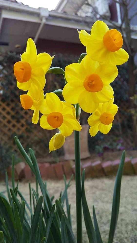 ウチの黄色の水仙はやっと蕾が伸びかけてきたところ。。