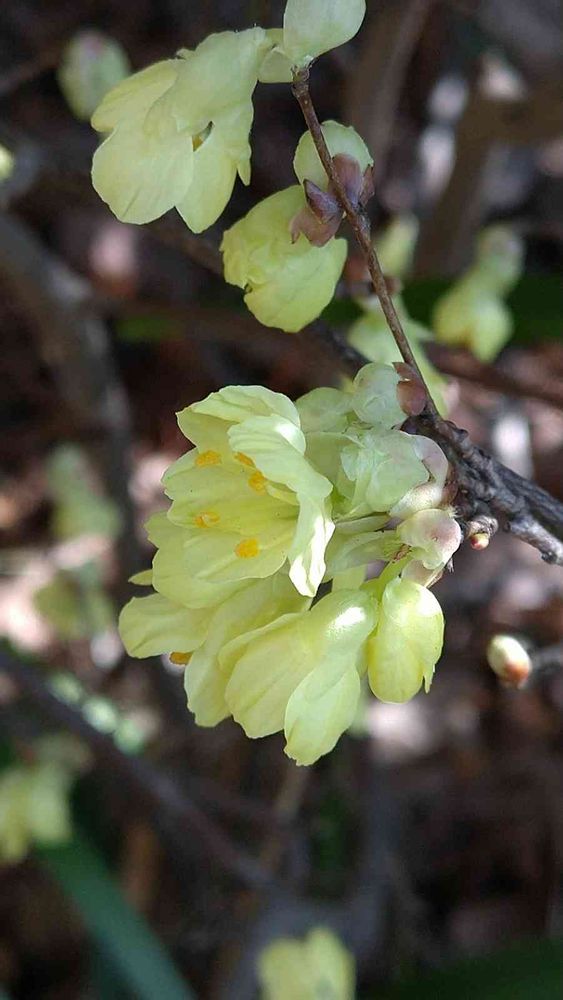 まーも名前を知らない時に投稿したら、一房に7〜10個の花を付け、蕊が赤いのがトサミズキだそうです。一房に3個の花、蕊が黄色いのはヒュウガミズキだそうです。