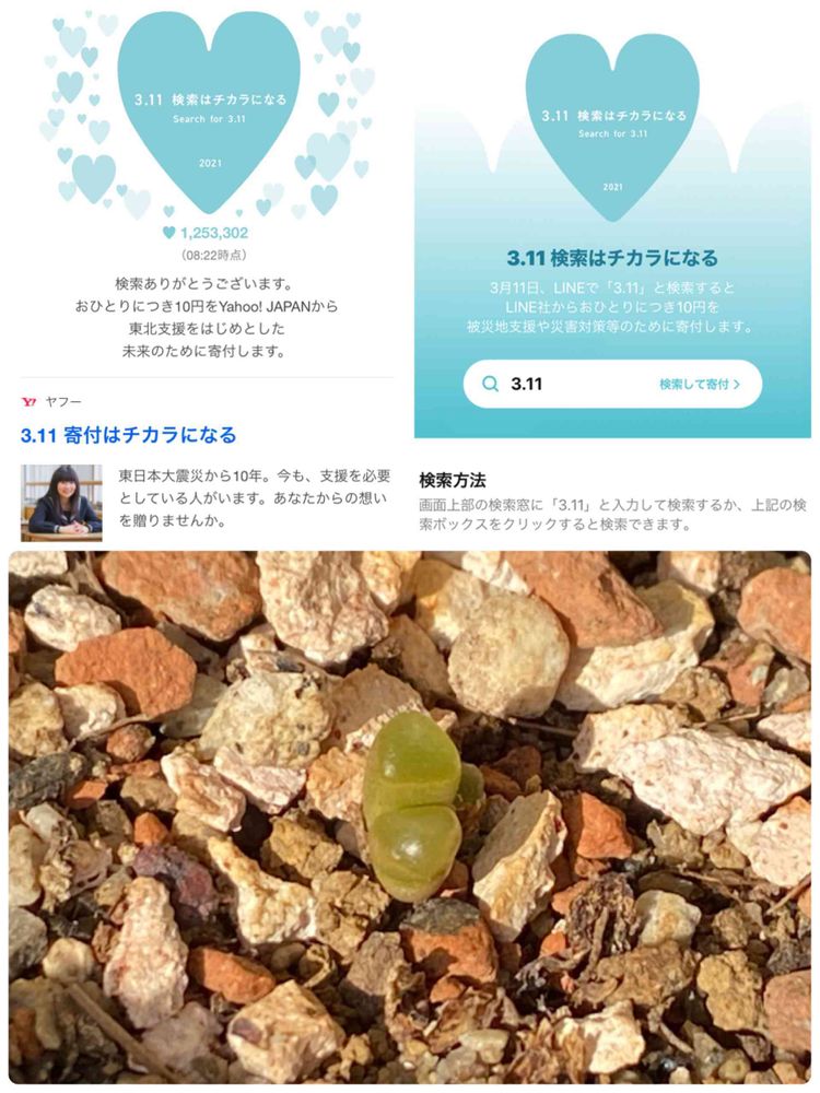 東日本大地震から10年、今も、支援を必要としている人がいます。LINEとYahooから、3.11と検索でささやかな寄付が出来ます。