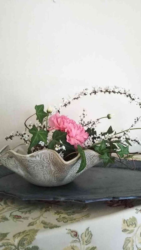 出来たてホヤホヤの多目的鉢(使いみちハッキリしてないダケなんですが😅)にありあわせで飾りました🤗