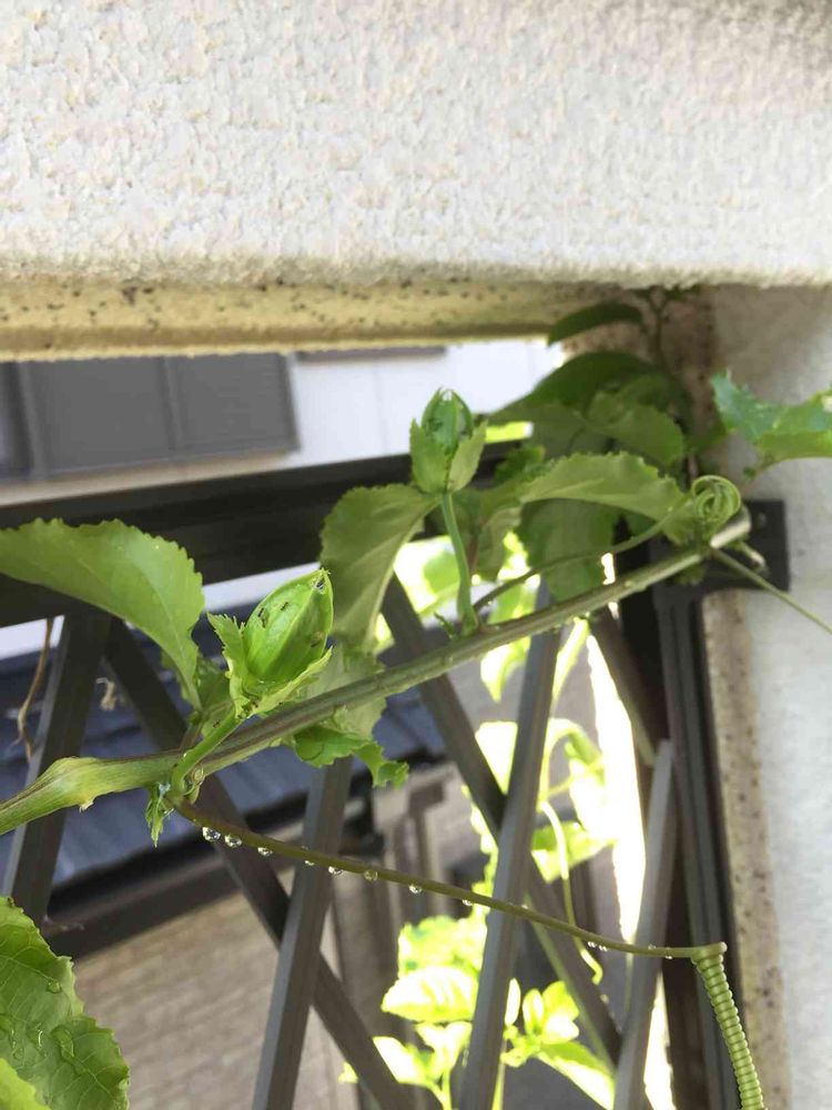 どうせ育てるなら食べれる物を笑 でも初めてなのよパッションフルーツ この写真は3日前のなんだけど今朝もみたけどまだ咲いてなかったぁ 実がなるかなぁ〜今のところこの2つしかツボミ発見してないの
