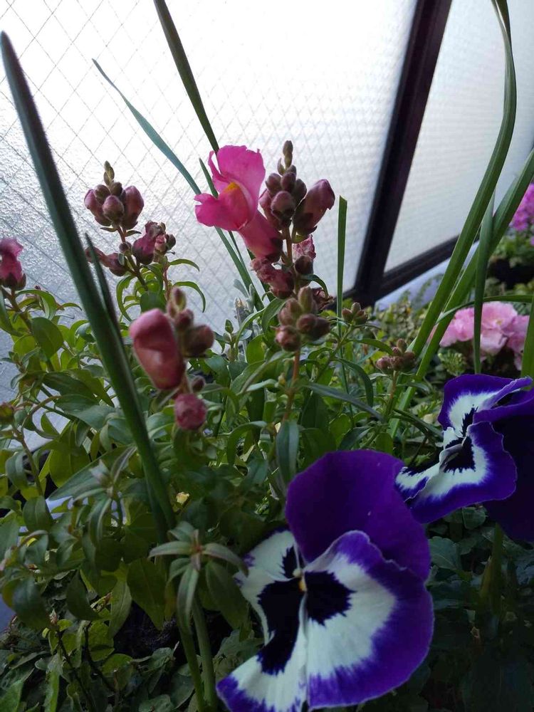 おじさん顔パンジーとキンギョソウで…