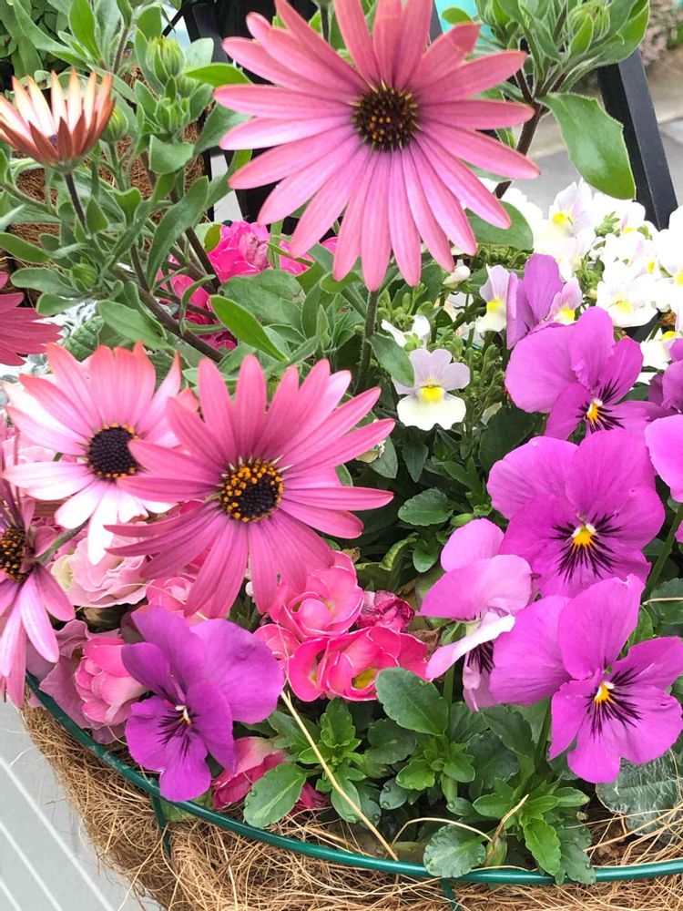 昨日作成したハンギングバスケットの寄せ植え🌸💗🌸