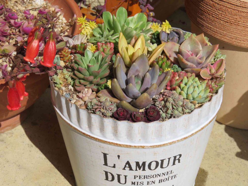 わぁ(*´ω`*)もりもりの寄せ植えですね☆*。たくさんの多肉ちゃんが入ってるのでアップにして探すの楽しいです🙌💕