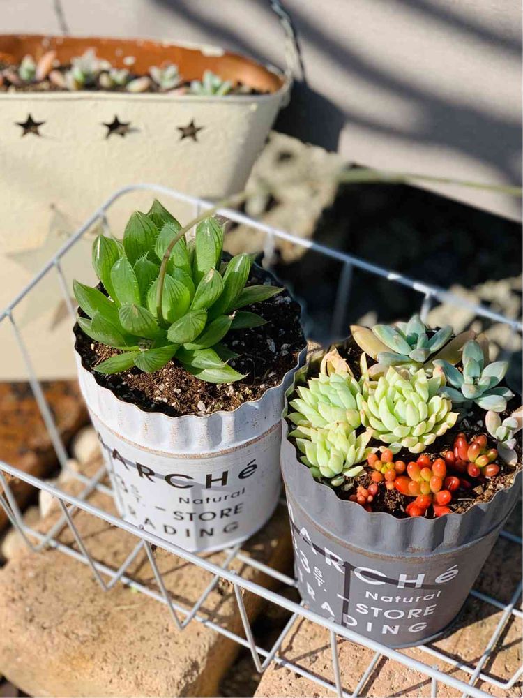 後ろの寄せ植えも気づいてくださって嬉しいです!雑貨屋さんのレターケースに🌱