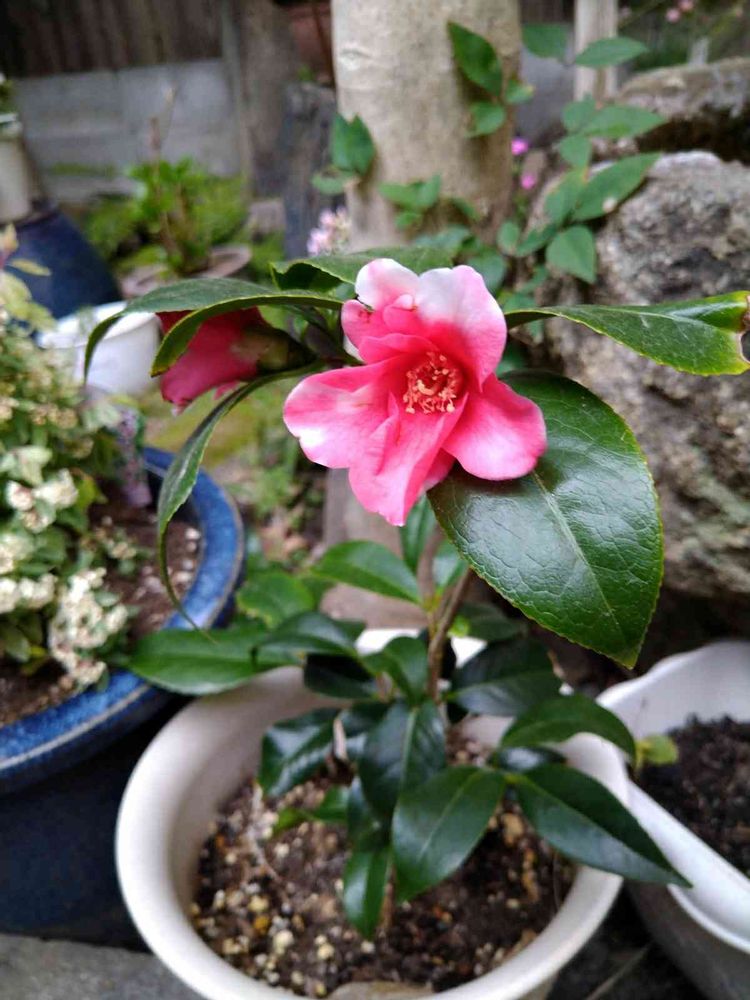 鉢植えで2年目の我が家の侘助椿『胡蝶侘助』のお花が開花しました🤗💕