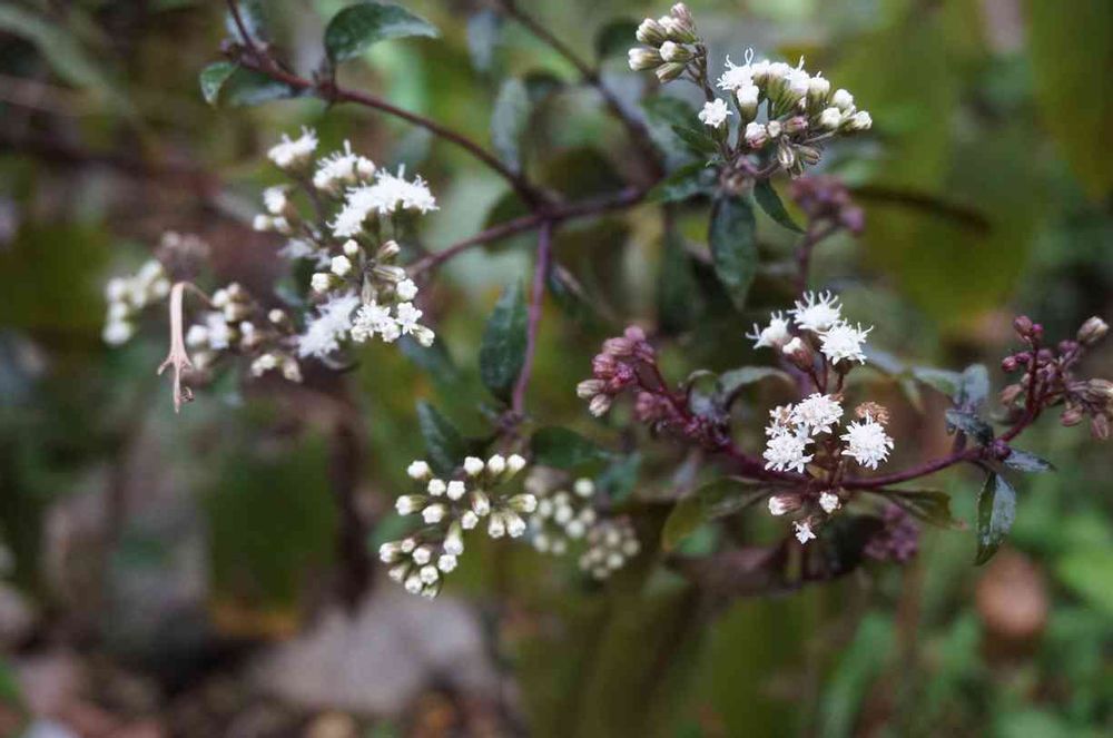 ユーパトリューム チョコラータが咲いています。銅葉の葉っぱが魅力です。
