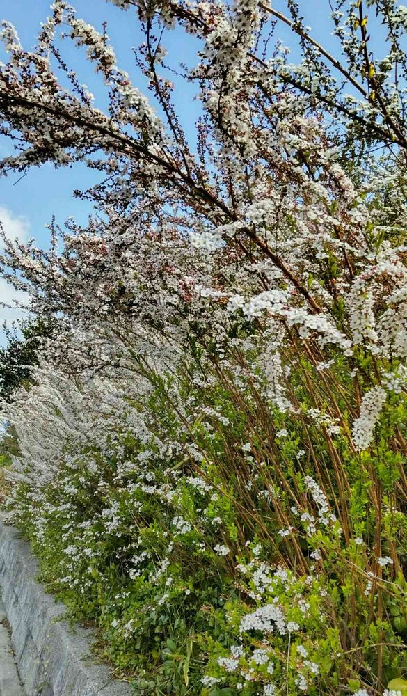 公園の生け垣にも、最近は白いゆきやなぎと同じくらいピンクが植えられてます!