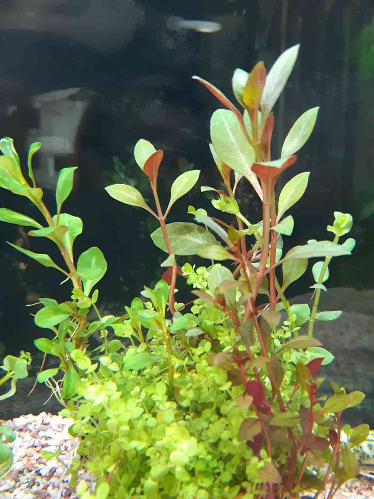 ペットショップの店員さんに相談したら、ちょうど今日、入ってばかりなんですが。と丸い粘土みたいなのに3種類の水草が植えられていたのを提案していただきました💕