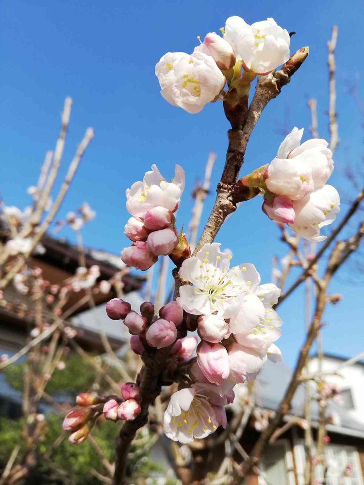 ご近所(花友)さんちのサクランボ🍒も青空の元 開花♡