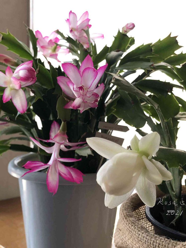白いシャコバサボテンのパールも蕾が開いてきました🙌