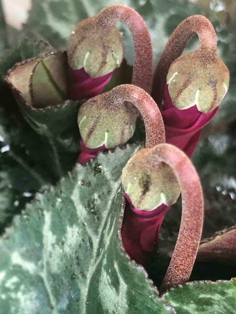 皆んなで恥ずかしそうに下を向いて、可愛いシクラメンの蕾さん達ですね💕
