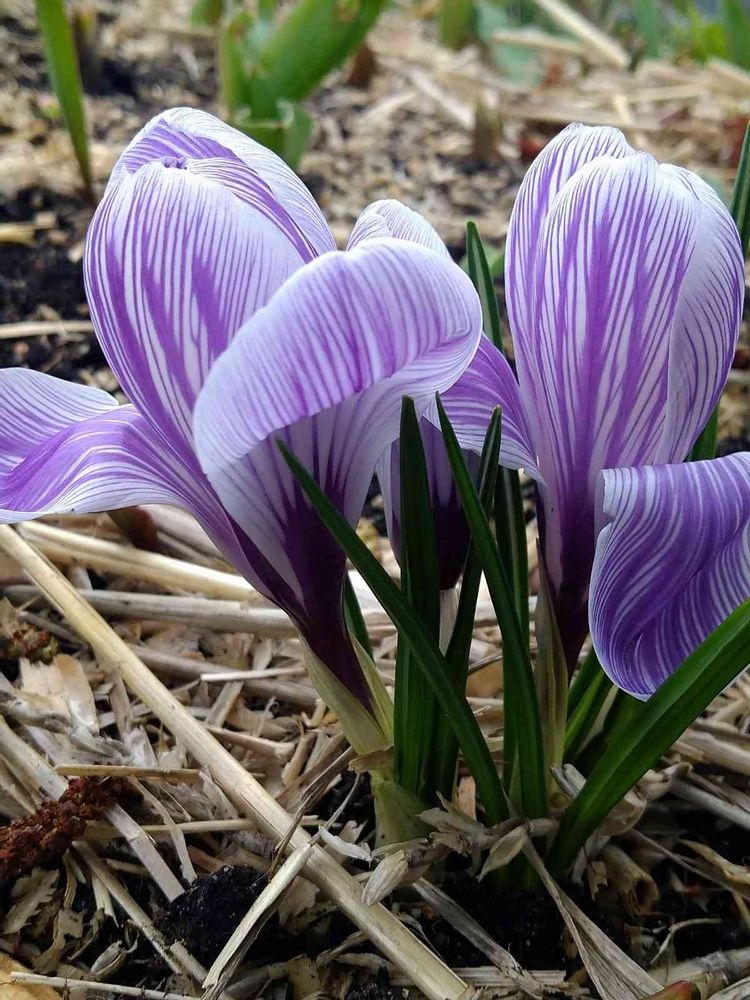 ストライプ柄が素敵なお花です😉このお花も含め私がGS に載せたクロッカスは全部その辺に生えてたというか…😅日本の中央分離帯の緑地帯のような空間が建物、運河、道ごとにたっぷりあって、その芝生の一帯にばさーっと植えられて、色んな種類のが生えてます😊黄色一色のも見事たえありますね😉
