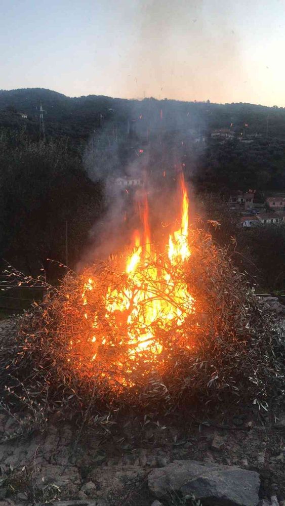うちの焚き火は、よーく見てもらうとわかると思うのですが、これ、みんな小枝なの。太い幹や枝は丁度いい大きさに切って、次の冬の暖房のための燃料になっています😊