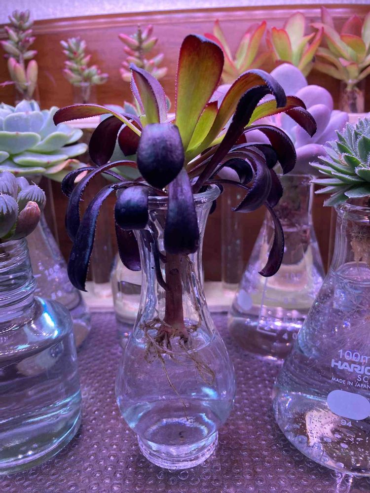 アエオニウム系、水耕栽培向いてるんですね!うちのグリーノビアさんも、あとからアエオニウムに属してると知って、なかなか根が出ず、ひとつ水耕栽培に移行しようかと思ってます。