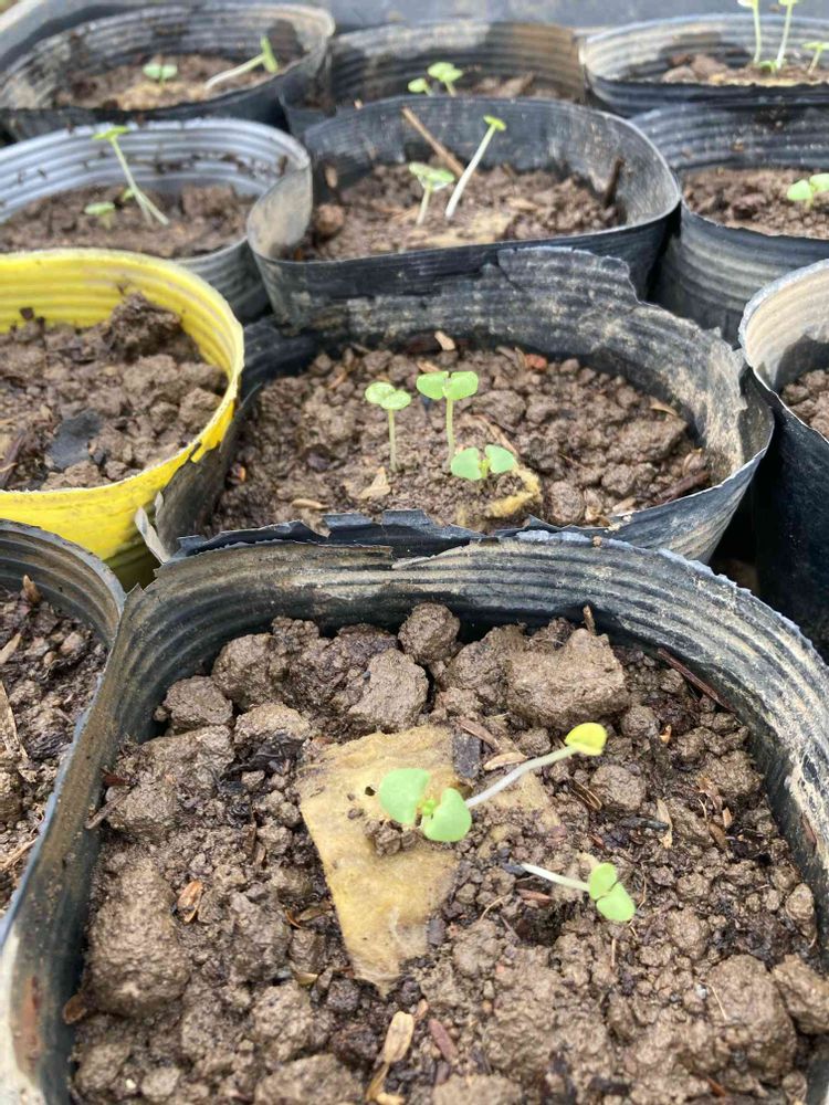 スイートバジルをロックウールからポットに植え付け。元気に育ってね。