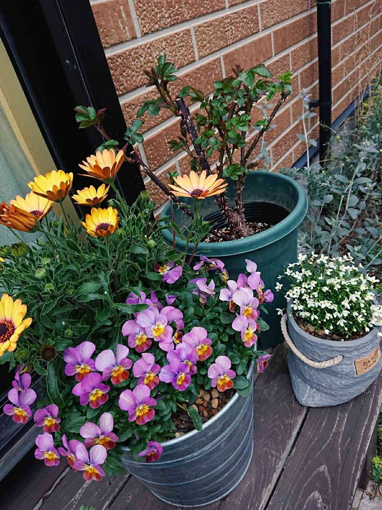 小さな庭,ビオラ・パンジー,オステオスペルマム寄せ植えの投稿画像