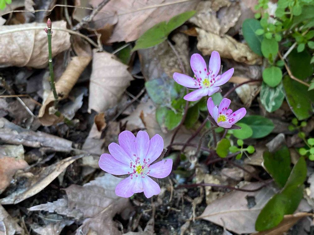 落ち葉の中に小さくて可憐なミスミソウが