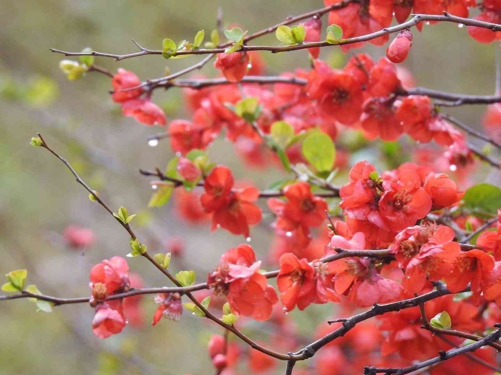 雨上がりの木瓜に雫が綺麗でした☺️