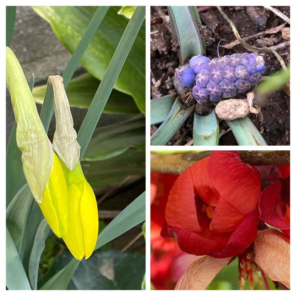 木瓜は咲いたのもあったのですぐアップできますが、ムスカリがまだで😅