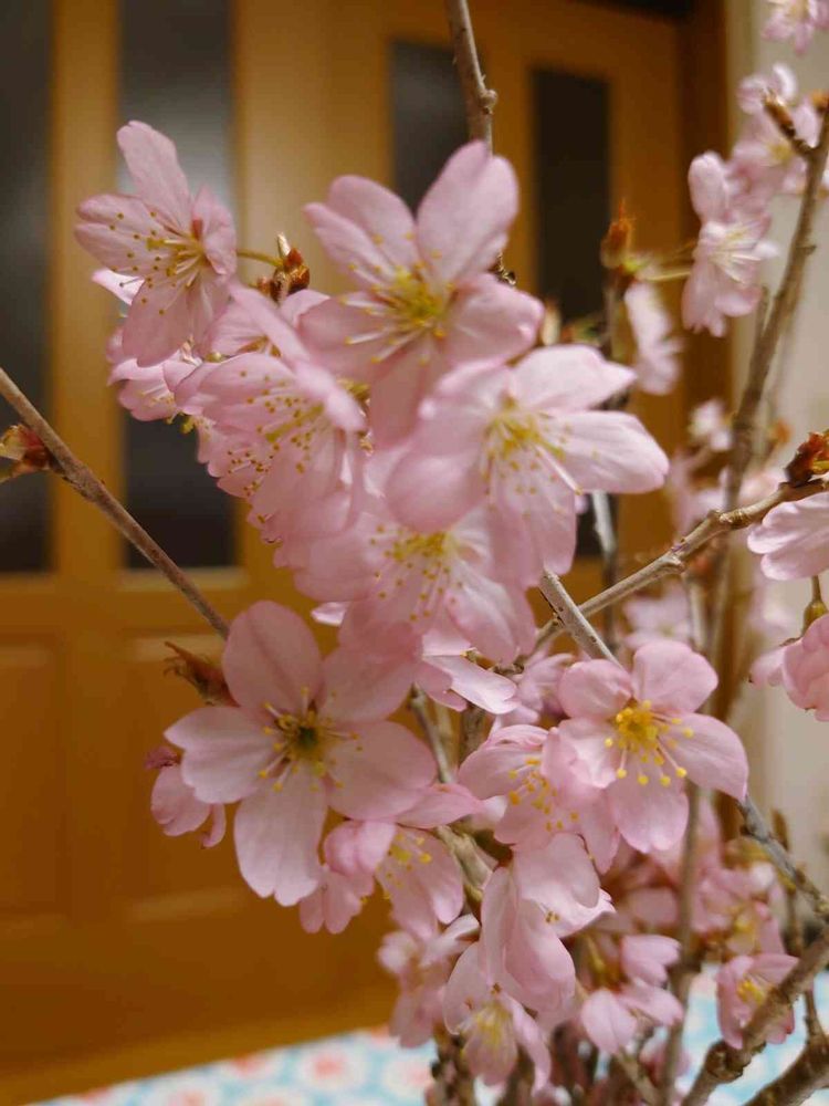 実家の彼岸桜🌸、小枝を花瓶に、生けてみました🎵