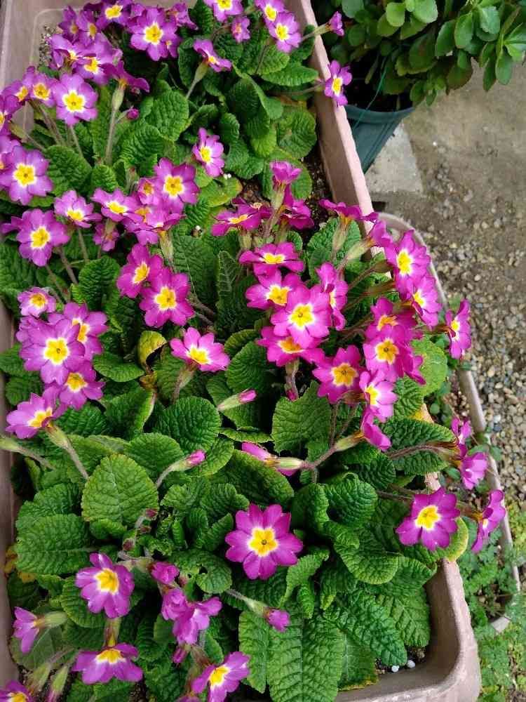 地植えの株分けして並べているポリアンサにも遅れてお花がポツリポツリと咲き始めました🙆
